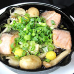 たっぷりネギと秋鮭のアヒージョ