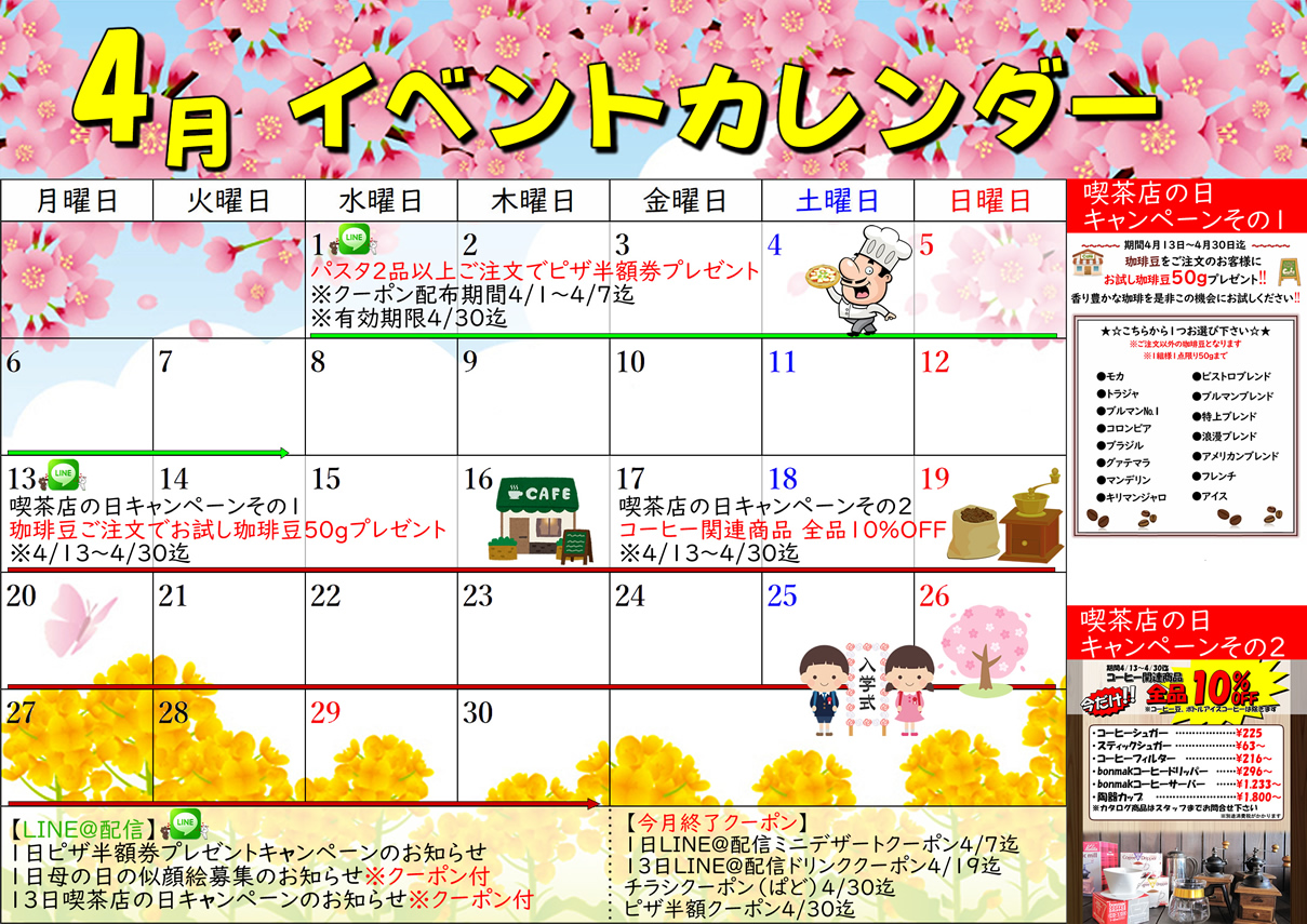 4月イベカレHP | ビストロ埼玉県越谷市のビストロ