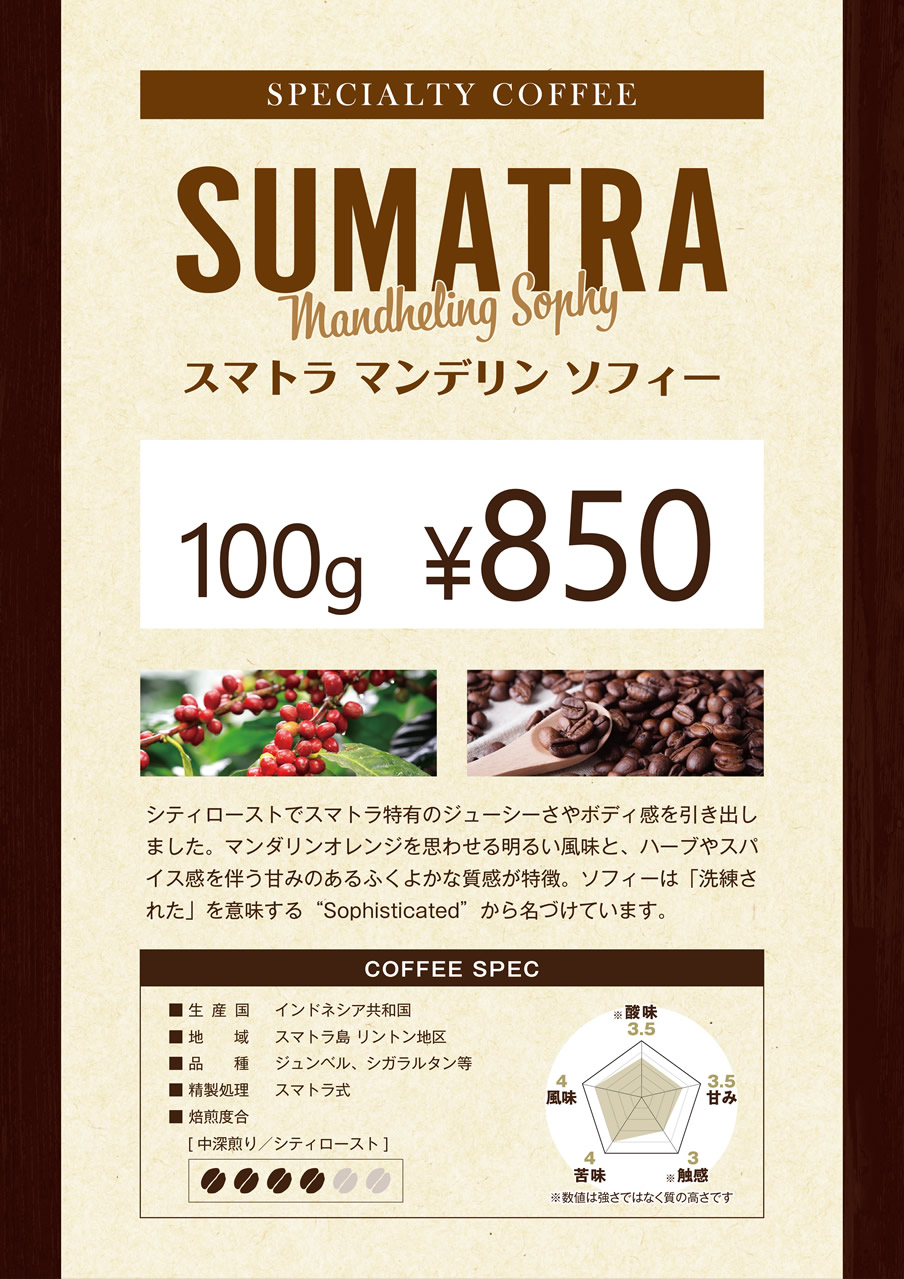 11月スマトラマンデリンソフィー豆HP | ビストロ埼玉県越谷市のビストロ